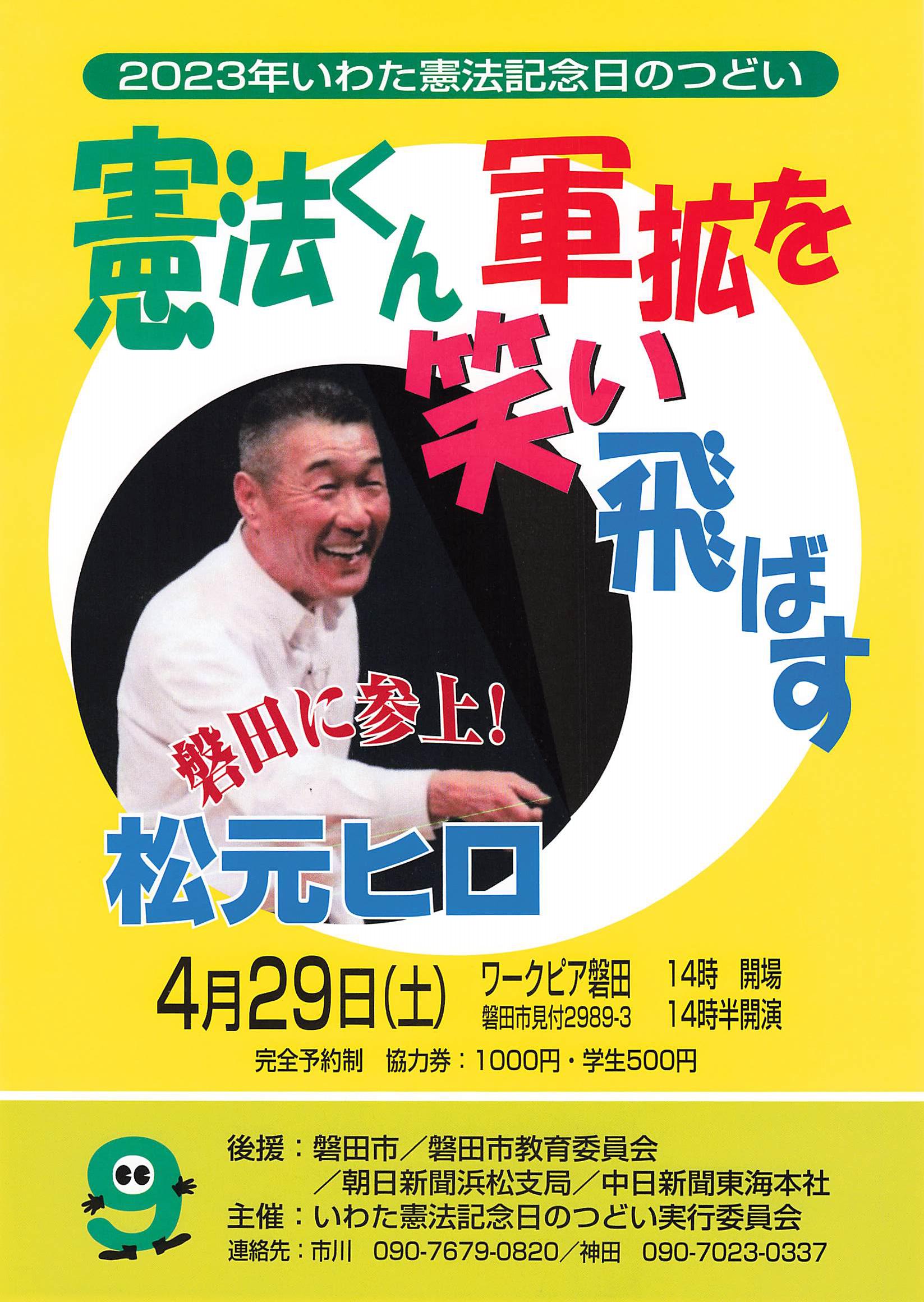 「テレビで会えない芸人」松元ヒロ磐田に参上!