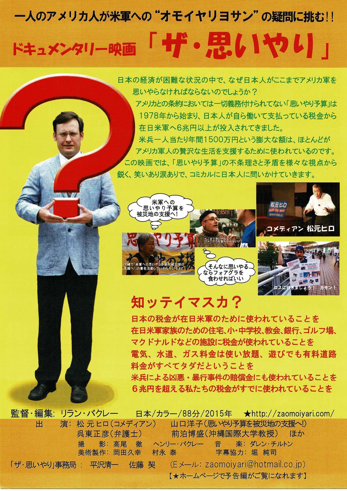 一人のアメリカ人が米軍への”オモイヤリヨサン”の疑問に挑む!!